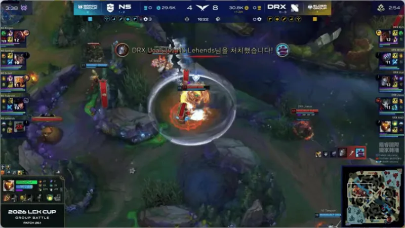 22分钟,DRX中路开团,两边打野互换